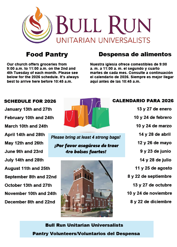 Donations of reusable cloth bags are always welcome! If you have any shelf stable items to donate, please place your contributions on the shelf at the end of the hall next to Room 106. Dedicated Sunday offerings help to replenish the funds needed to restock the food supplies.